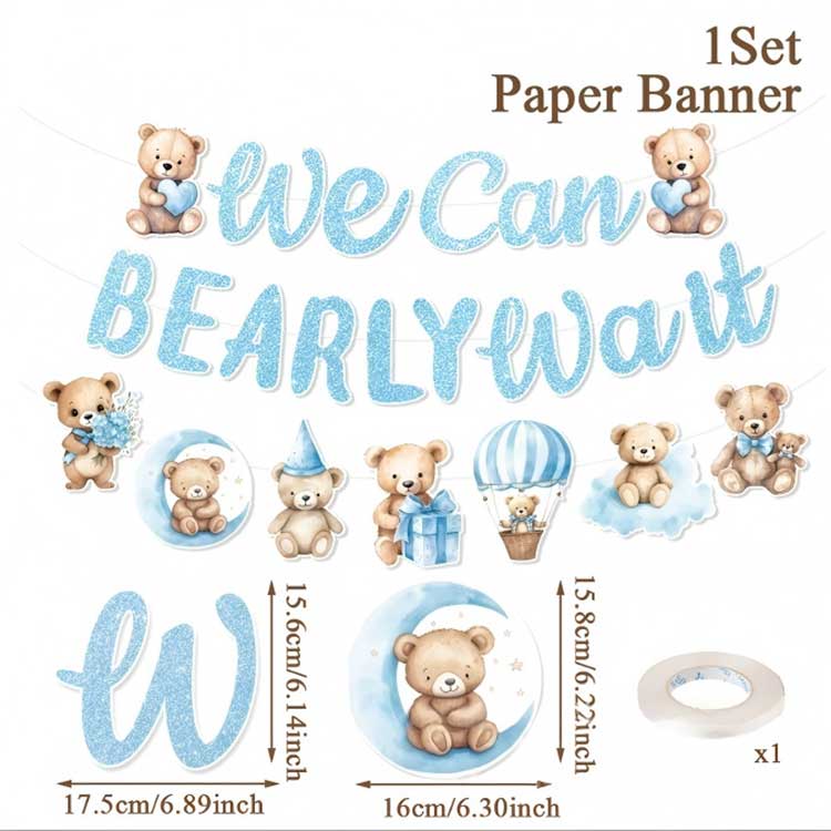 Sepanduk hari jadi: 1 sepanduk/set, dengan 2-3 tali gantung untuk hiasan gantung; dicetak dengan "Selamat Hari Lahir" atau "Selamat Datang". Teks bertemakan bayi