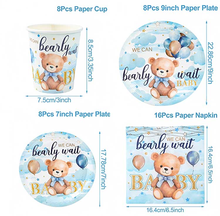 Saiz set pinggan pakai buang ulang tahun bayi:Produk ini dibungkus dalam beg OPP, tetapi pembungkusan kad kertas juga tersedia. Kami boleh menyesuaikan pembungkusan mengikut keperluan khusus pelanggan.
