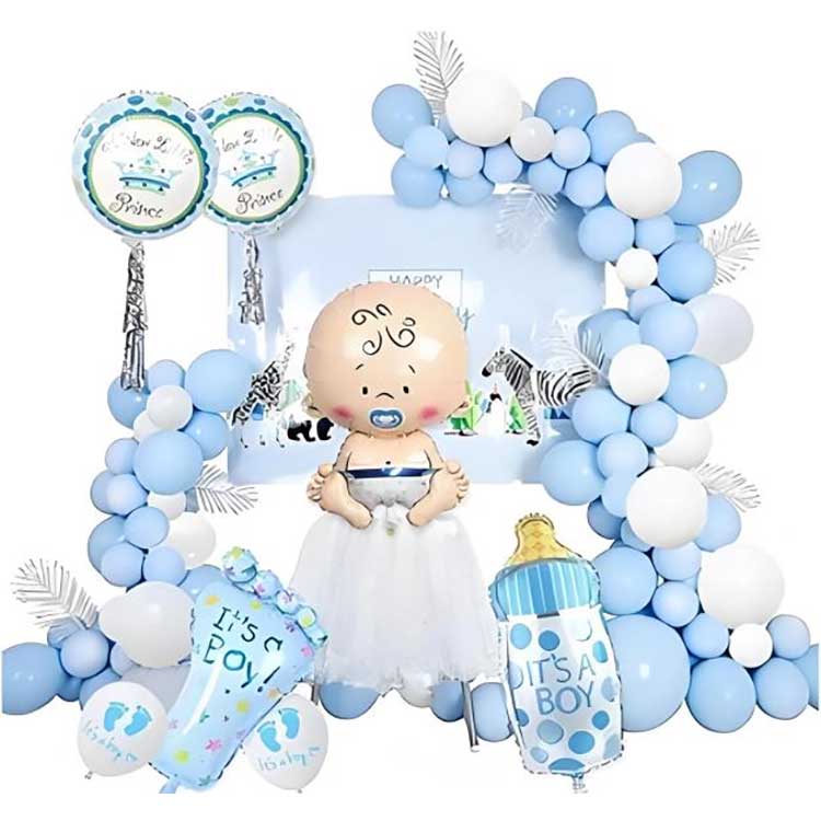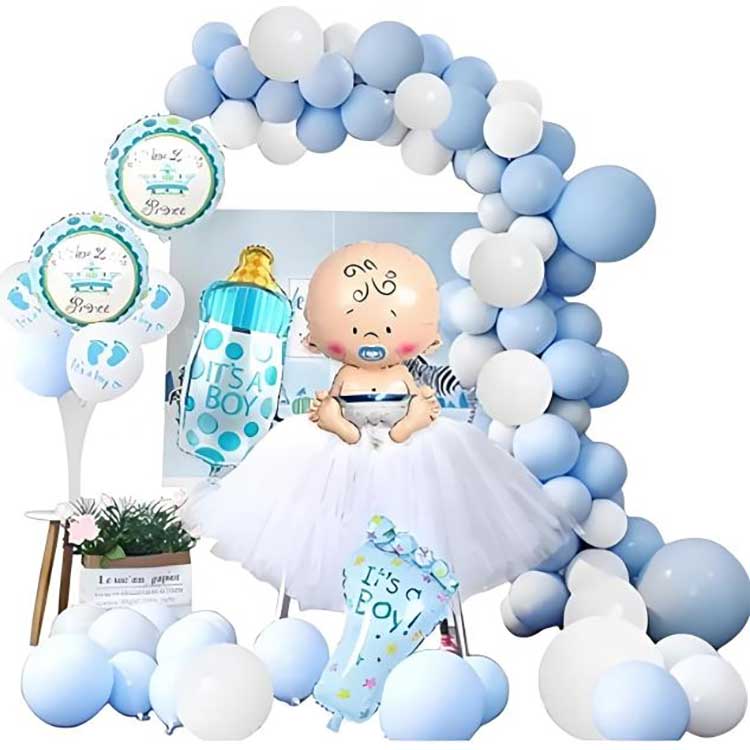 Set hiasan gerbang belon mandi bayi didatangkan dalam dua pilihan warna, yang masing-masing sesuai untuk kanak-kanak lelaki dan perempuan. Dalam reka bentuk kami, kami menyediakan belon lateks biru daripada siri Macaron untuk pakaian kanak-kanak lelaki, serta belon foil dalam bentuk kanak-kanak lelaki dan produk bayi. Kami juga telah menyediakan aksesori yang sama untuk pakaian kanak-kanak perempuan dalam siri merah jambu. Warna biru dan merah jambu meningkatkan tema pesta bayi, membolehkan setiap peserta merasai suasana kesucian dan tidak bersalah, pertumbuhan dan harapan.