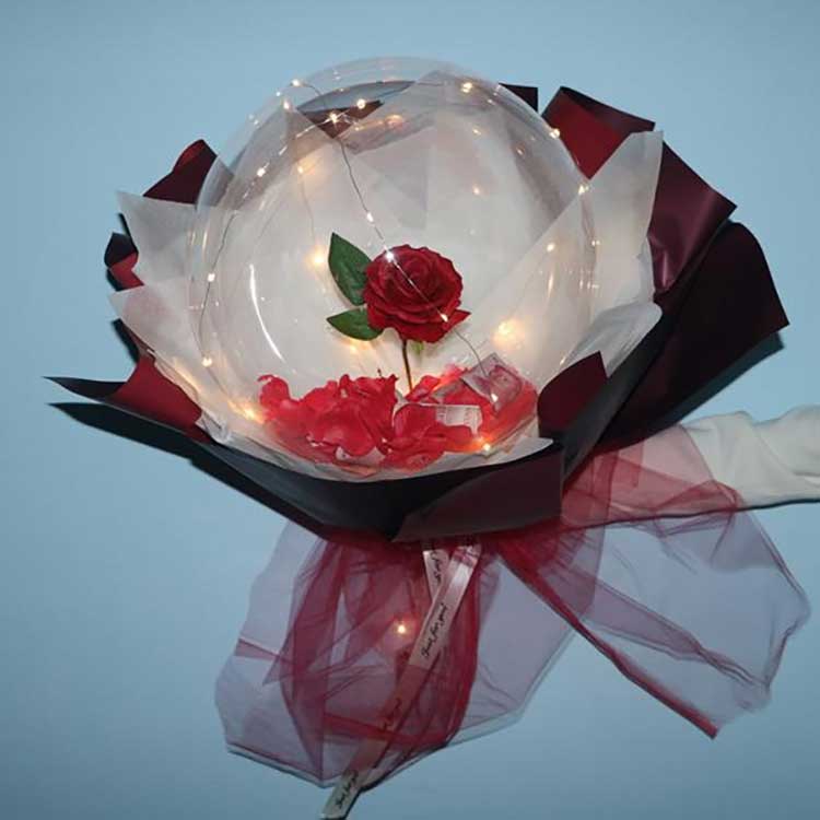 Belon BOBOadalah sangat atmosfera:Menampilkan belon BOBO lutsinar, bunga ros terbenam dan lampu LED, set ini menghasilkan kesan visual yang terang dan romantis. Lampu LED juga memberikan cahaya lembut, menjadikannya hadiah penting untuk Hari Valentine, ulang tahun, hari lahir, graduasi dan Hari Ibu.