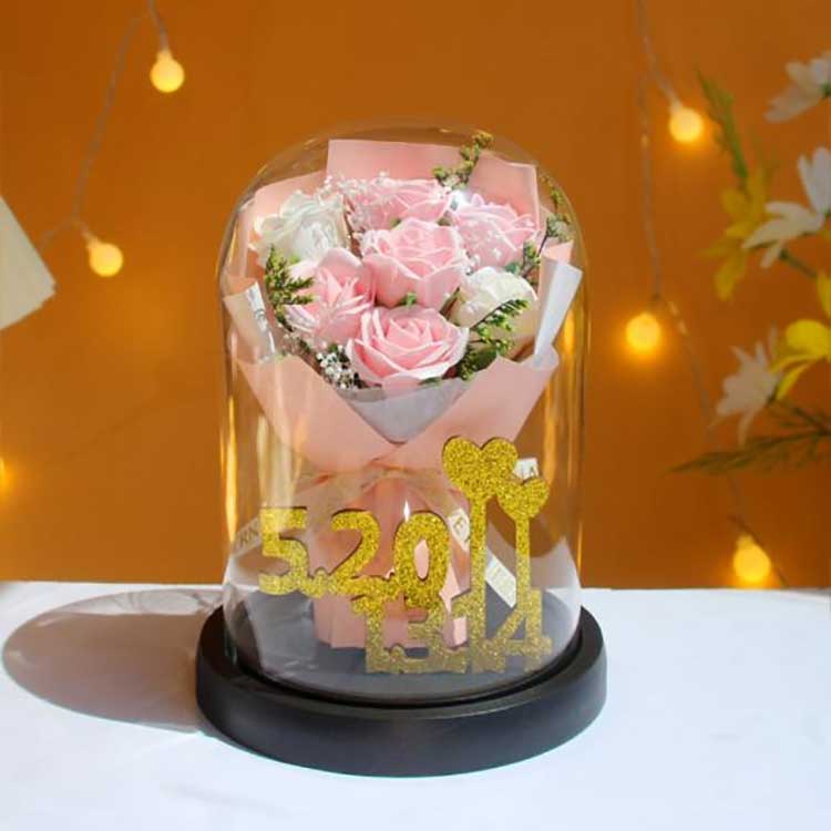 Sabun mawar bertutup kaca kami mengekalkan warna cerah dan rupa semula jadi, manakala penutup kaca lutsinar menambah rasa romantis dan mewah kepada mereka. Kami menyediakan pelbagai pilihan penyesuaian: menggunakan ukiran laser dan teknologi pencetakan UV, logo jenama, mesej diperibadikan atau corak tema diukir pada kaca. Warnanya tahan lasak, butirannya jelas, dan ia tidak luntur, menjadikannya pilihan ideal untuk promosi pengiklanan, hadiah percutian, hadiah perkahwinan atau cenderahati korporat.