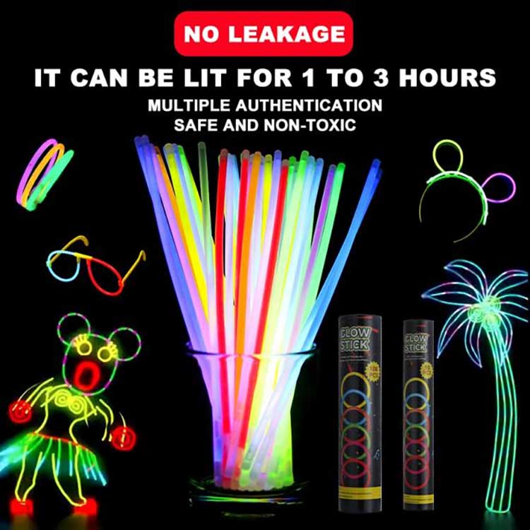 Glow stickt telah dinaik taraf kepada warna yang lebih cerah dan menarik perhatian. Ia boleh kekal diterangi selama 1 hingga 3 jam. Bahan pendarfluor yang digunakan dalam kayu pendarfluor mempunyai kepekatan yang tinggi, menghasilkan cahaya yang tahan lama dan berintensiti tinggi.