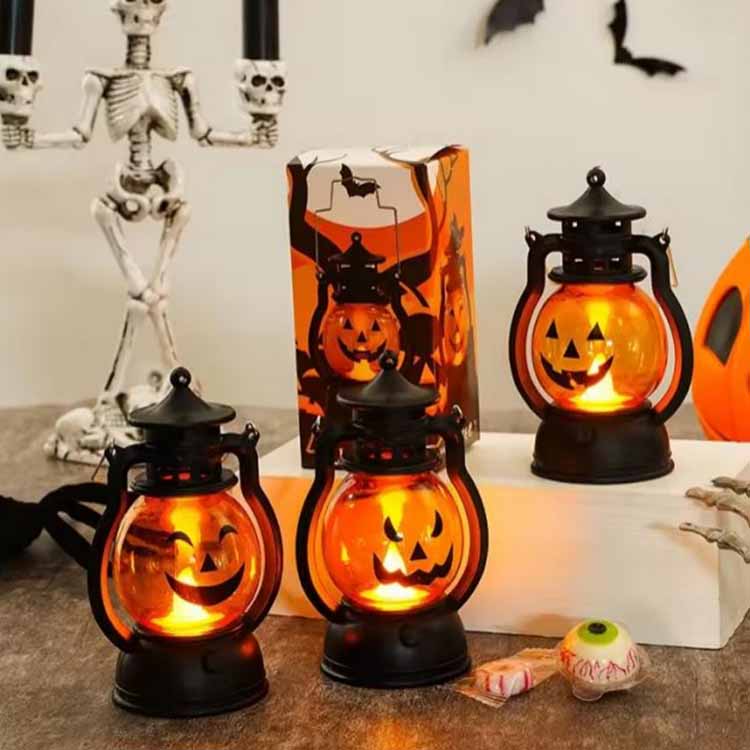 Lantern Labu Halloween adalah salah satu hiasan Halloween yang paling ikonik. Diperbuat daripada plastik haiwan peliharaan yang menebal, ciri -ciri tanglung yang diukir seperti wajah hantu dan sumber cahaya di dalamnya, mewujudkan suasana misteri, menakutkan, dan menyeronokkan.
