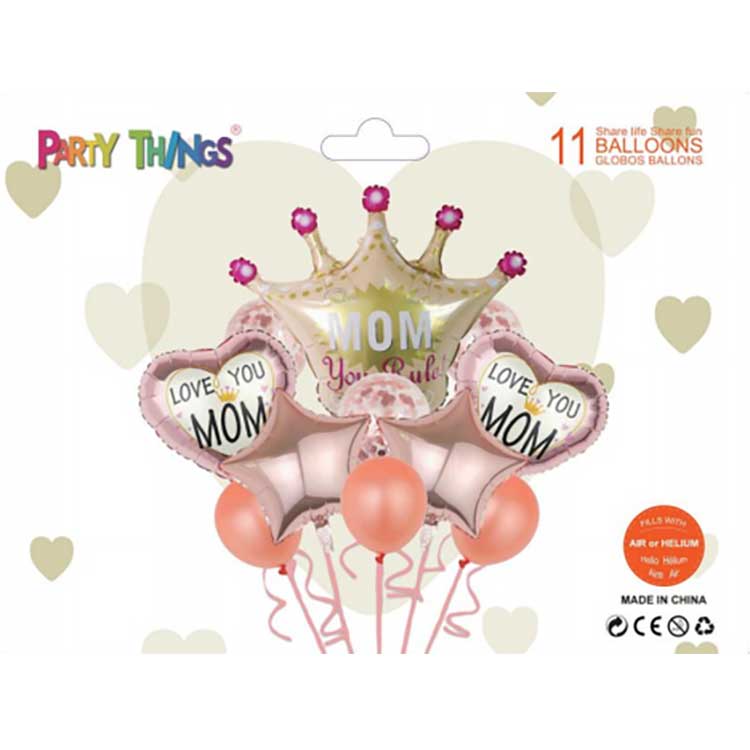 Set Belon Selamat Hari Ibu NewShine terdapat dalam pelbagai reka bentuk, termasuk belon lateks dan belon foil kartun bercetak. Anda boleh mencampur dan memadankannya untuk mencipta set belon unik anda sendiri.