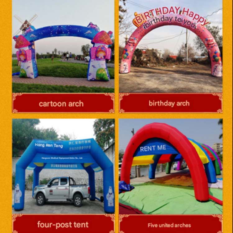 Diperbuat daripada bahan tahan lama dan terdapat dalam pelbagai bentuk dan warna, gerbang kembung ini mengembang dengan cepat dengan pam dan dilengkapi dengan beg pasir dan tali untuk pemasangan yang mudah. Mereka boleh dicetak pada tanda -tanda besar atau ruang acara dan boleh diguna semula dan ekonomi. Mereka sesuai untuk bukaan besar, pameran, acara sekolah, dan parti.