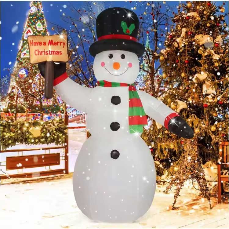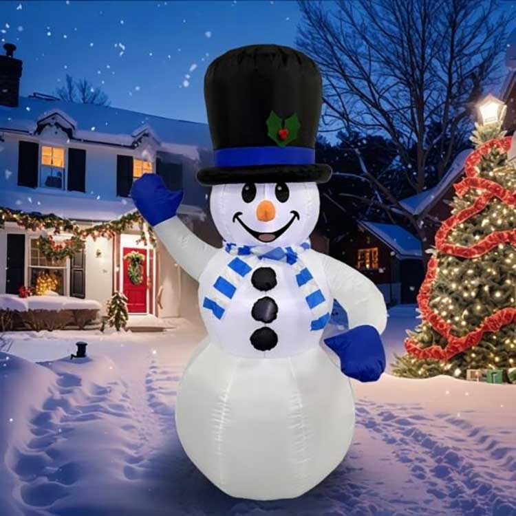 Orang salji Krismas kembung kami datang dalam pelbagai reka bentuk dan saiz untuk anda pilih. Saiz standard termasuk 1.8m dan 2.2m. Kami juga boleh menyesuaikan saiz dan reka bentuk mengikut spesifikasi anda. Kami menawarkan pelbagai pilihan, daripada model kecil yang sesuai untuk balkoni keluarga dan ruang tamu kepada model besar untuk dipamerkan di atrium pusat beli-belah dan plaza yang komprehensif.