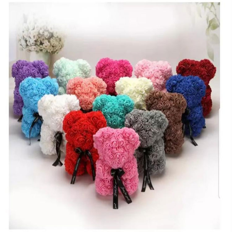 Penyesuaian Aksesori: Rose Teddy Bear kami juga menawarkan aksesori tersuai.Kustomer boleh memilih untuk menyesuaikan tudung, karena, mahkota, dan aksesori lain untuk membuat mawar anda beruang lebih unik.