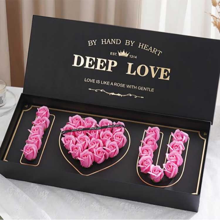 Kotak Bunga Soap Rose Heads berukuran 61cm*26cm*10cm. Saiz ini boleh menampung sepenuhnya jumlah bunga sabun yang mencukupi, menghasilkan kesan visual yang indah, di samping memudahkan penyimpanan dan pengangkutan seterusnya. Sama ada untuk pembelian peribadi sebagai hadiah atau untuk pembelian pukal korporat sebagai hadiah, ia boleh memenuhi keperluan untuk kegunaan peribadi dan korporat dengan mudah.